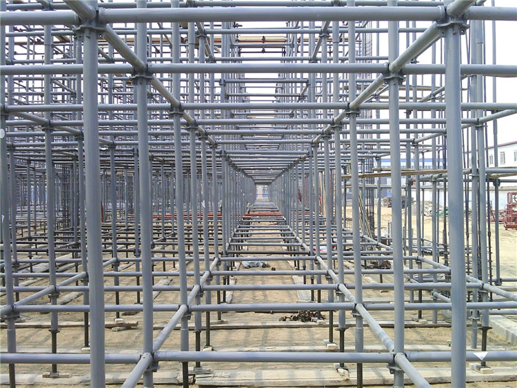 8.满堂脚手架中间设置通道时,通道处底层门架可不设纵(横)方向水平加固杆,但通道上部应每步设置水平加固杆。通道两侧门架应设置斜撑杆。